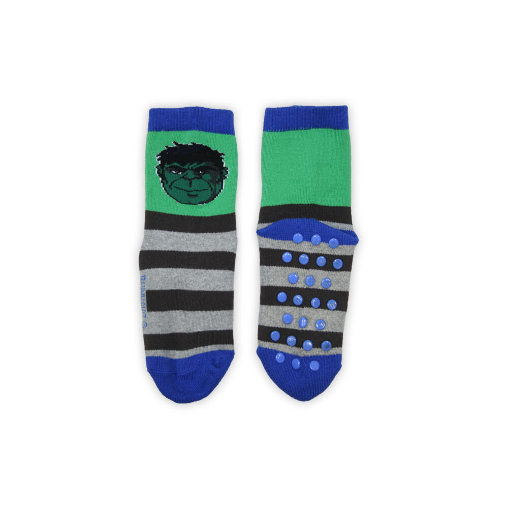 Csúszásgátlós gyerek bokazokni - Bosszúállók - teliplüss - zöld-szürke - 31-34