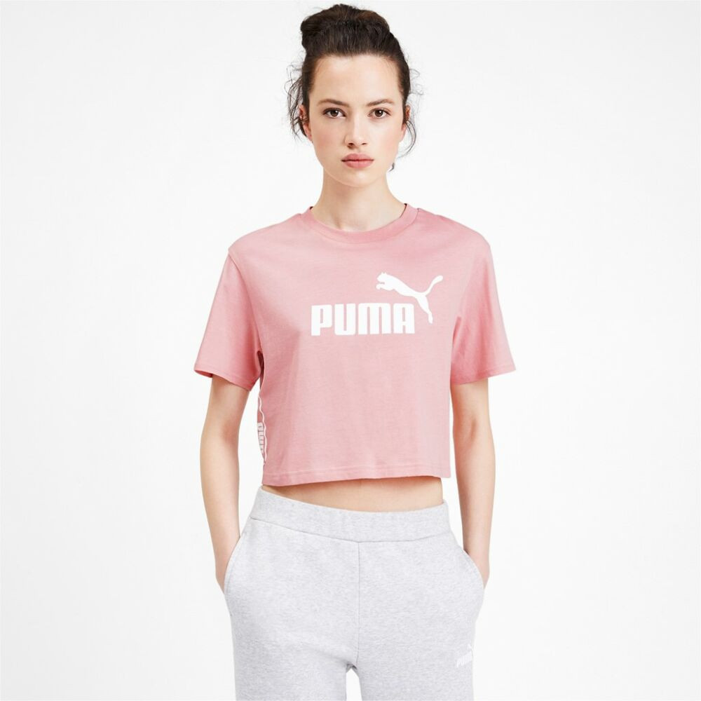 Puma Sport-T-Shirt mit hohem Baumwollanteil, verkürzter Schnitt, kurze Ärmel, hellrosa Farbe.