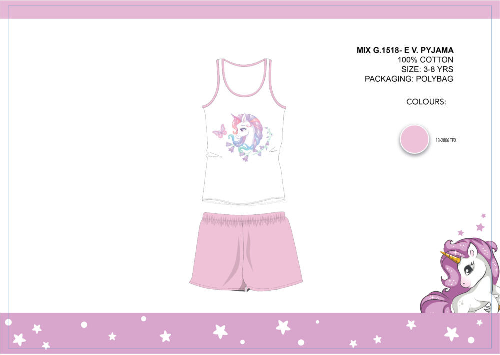 Einhorn-Sommer-Jersey-Pyjama für kleine Mädchen aus 100 % Baumwollmaterial. Angenehmes, hautfreundliches Tragegefühl. Das Produkt ist in einer Geschenkbox erhältlich.