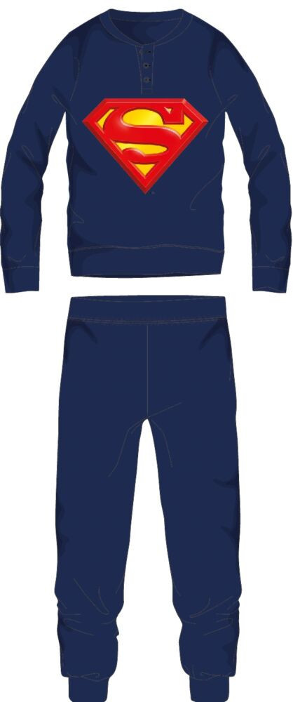 Superman Herren-Jersey-Pyjama aus 100 % Baumwollmaterial. Angenehmes hautfreundliches Tragegefühl. Mit geknöpftem Halsausschnitt, elastischem Bund, geradem, schmal zulaufendem Bein und Superman-Muster. Lieferung im dekorativen Karton.