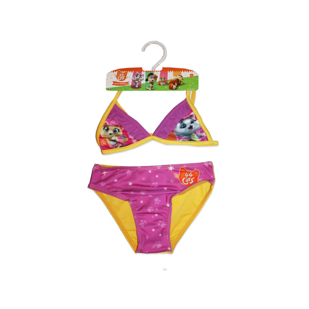 Swimsuit for little girls 44 with Csacska cat pattern, an essential accessory for the summer. Pleasant wear for the beach and spending time at the water's edge.