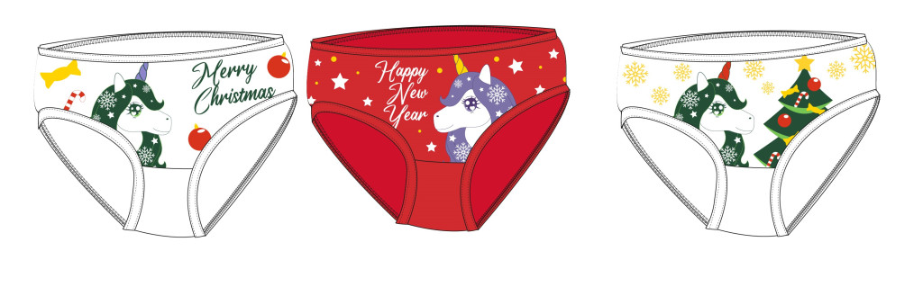 Unicorn Christmas girls panties - 3-piece cotton panties