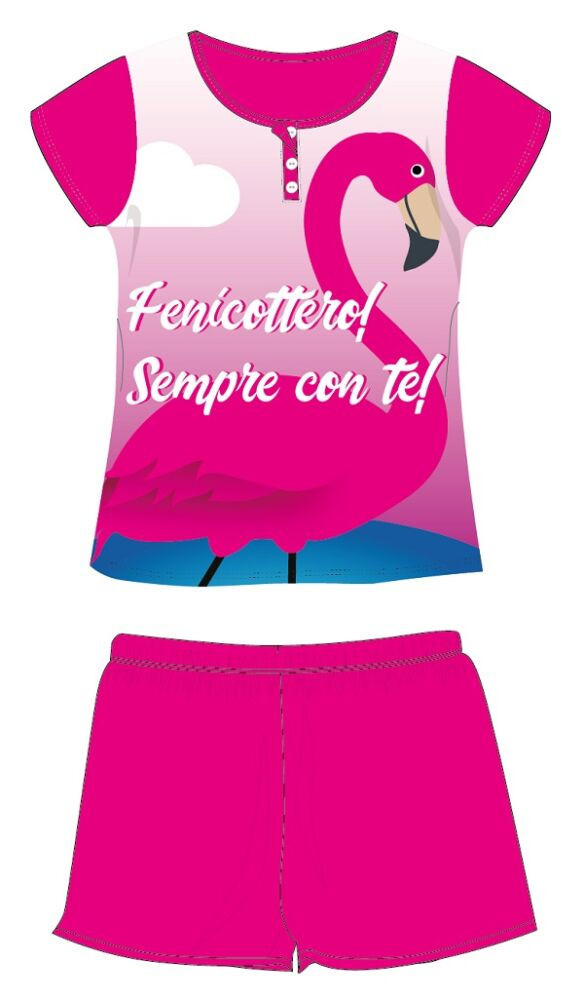 Flamingó nyári rövid ujjú gyerek pizsama - pamut jersey pizsama - pink - 110