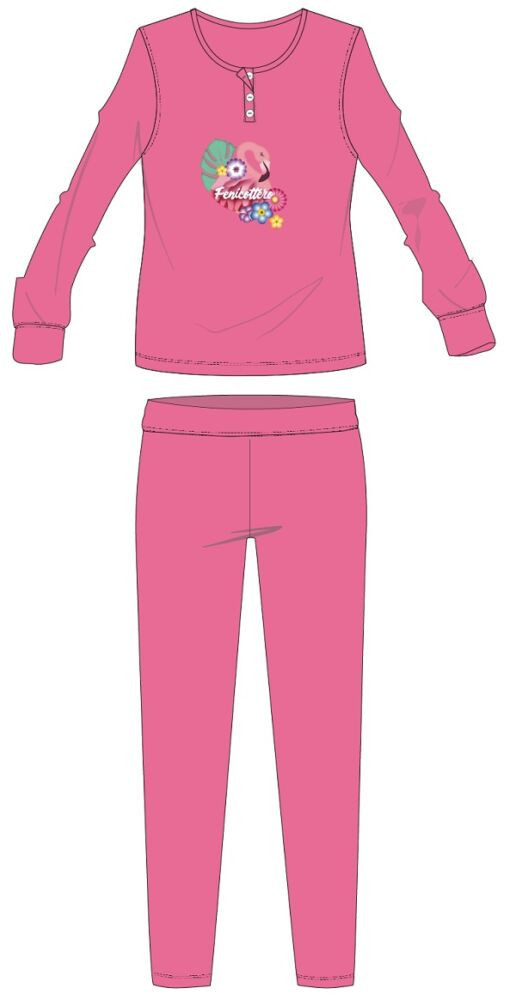 Flamingó téli pamut gyerek pizsama - interlock pizsama - rózsaszín - 116