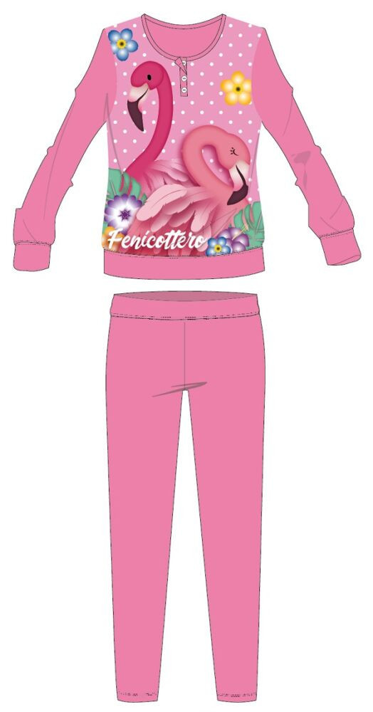 Flamingó téli vastag gyerek pizsama - pamut flanel pizsama - rózsaszín - 116