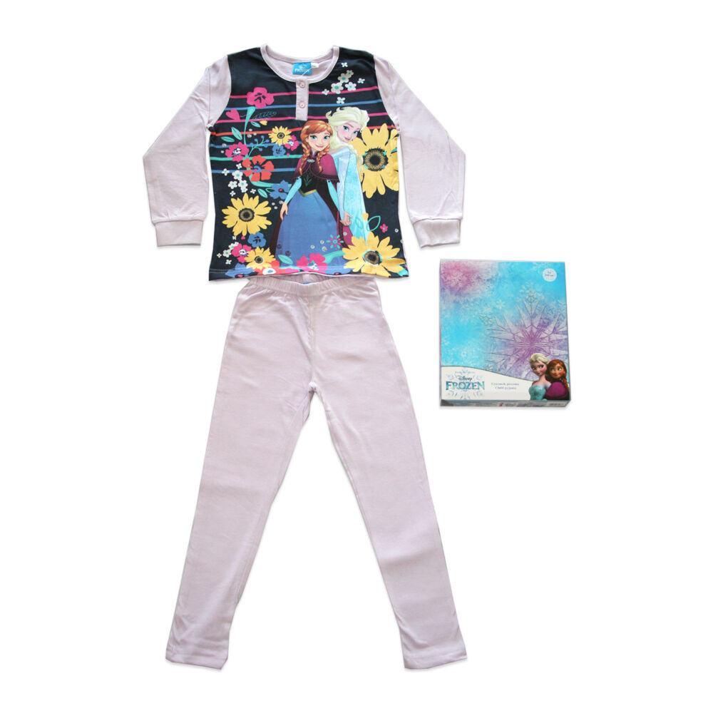 Hosszú vékony pamut gyerek pizsama - Jégvarázs - csíkos - Jersey - világoslila - 122