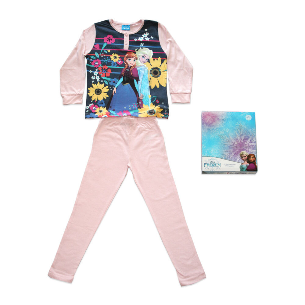 Hosszú vékony pamut gyerek pizsama - Jégvarázs - csíkos - Jersey - világosrózsaszín - 134