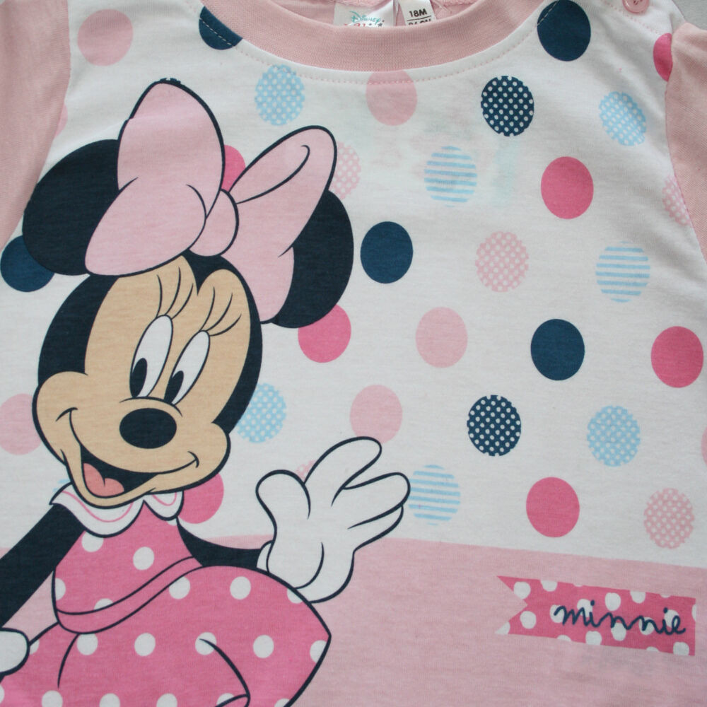 Pigiama lungo e sottile per bebè in cotone - Minnie Mouse a pois - Jersey - rosa chiaro - 80