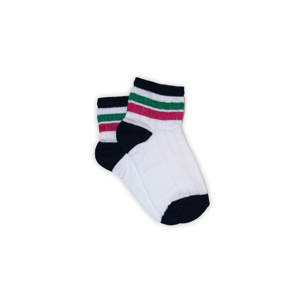 Lány pamut bokazokni - bordázott - csillámos - zöld-pink csíkos - 29-34