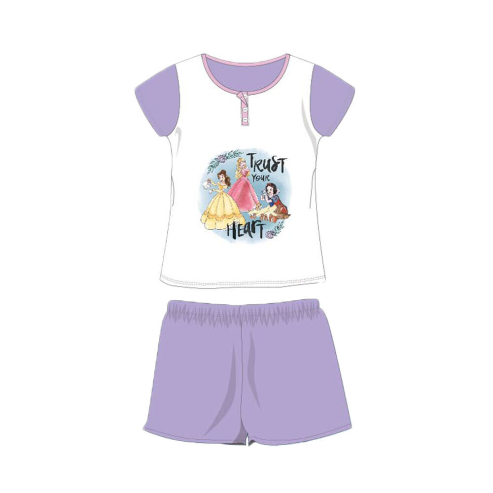 Nyári rövid ujjú gyerek pamut pizsama - Disney Hercegnők - Trust your heart felirattal - világo