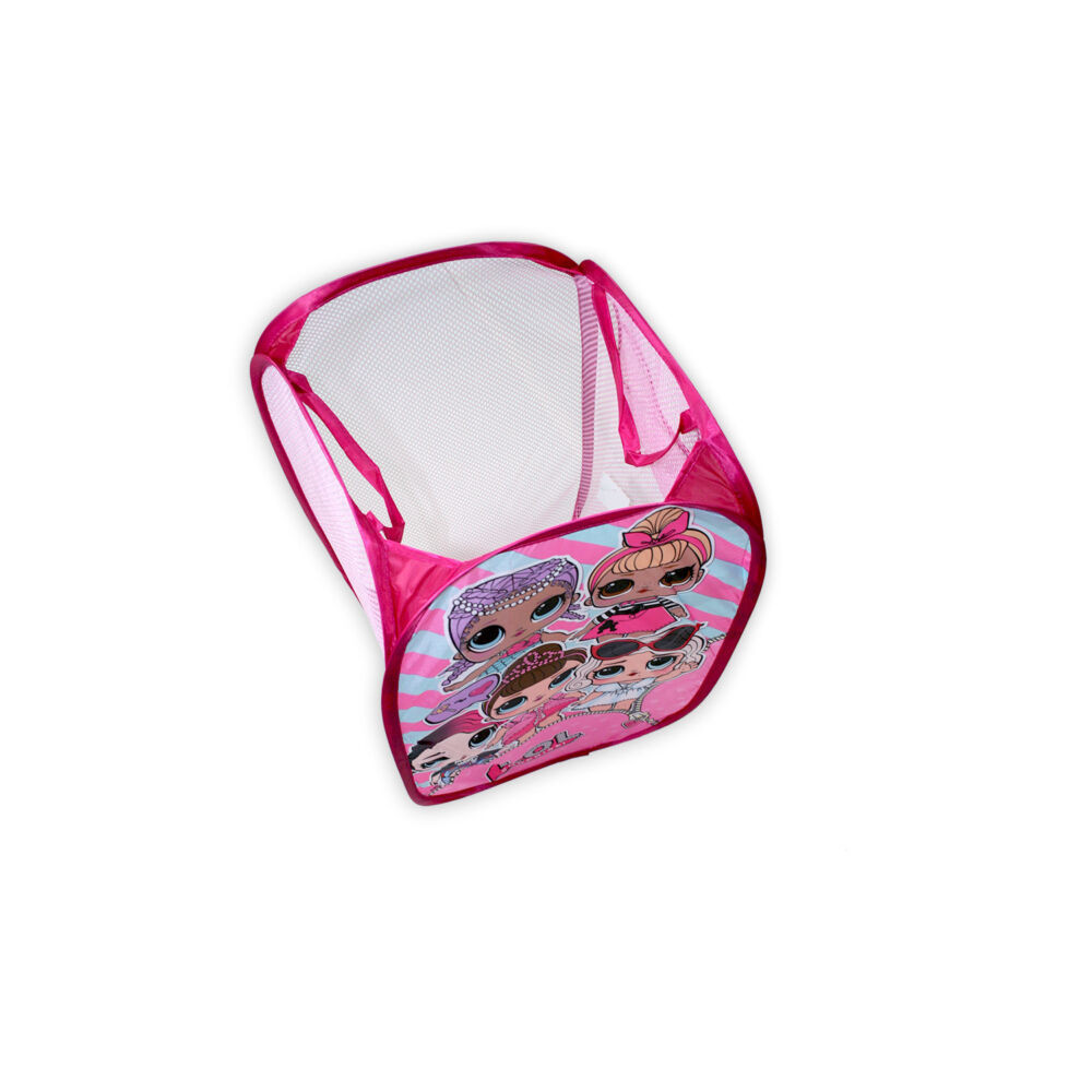LOL Coșul de depozitare pentru jucarii pentru copii este un decor adorabil pentru camera copiilor. Fabricat cu plasă din poliester lateral și imprimat face. Datorită din oțel elastic, poate fi deschis foarte ușor și poate fi pliat atunci când îl folosiți.