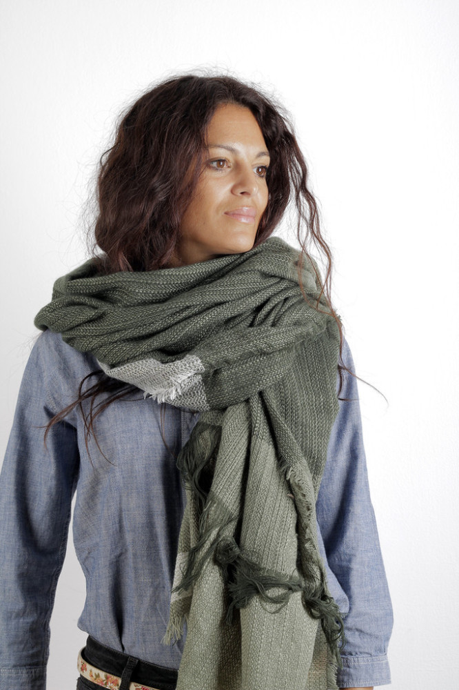 Esarfa Cecilia Gallerani - 200x98 cm - verde, cu franjuri