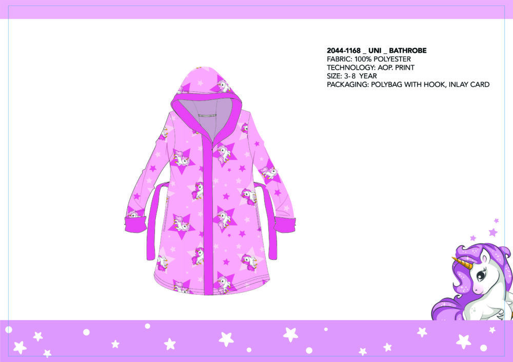 Halat cu gluga din microfibra pentru copii - Unicorn