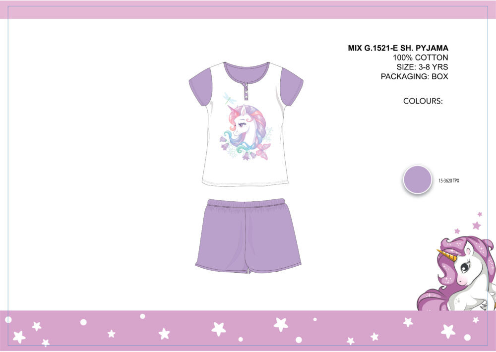 Letné djersejové pyžamo Unicorn pre malé slečny zo 100% bavlneného materúl, s gombíkom na gombík. Bolo by pekné nosiť jemné oblečenie. Produkt je dostupný v darčekovej krabičke.