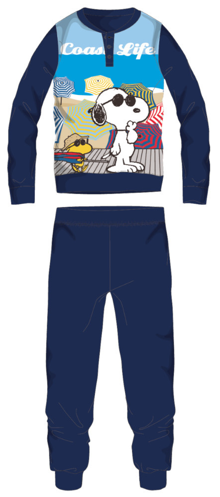 Snoopy hosszú vékony pamut gyerek pizsama - jersey pizsama - sötétkék - 116
