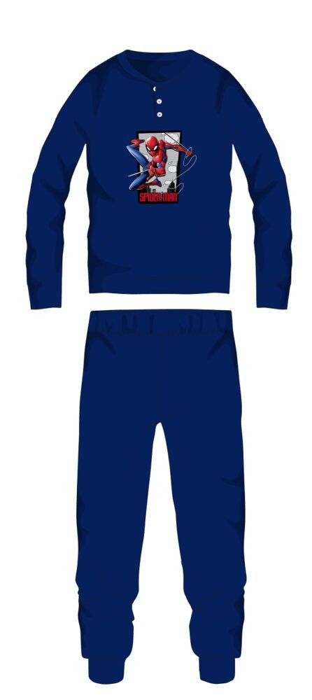 Spiderman téli pamut gyerek pizsama - interlock pizsama - sötétkék - 128