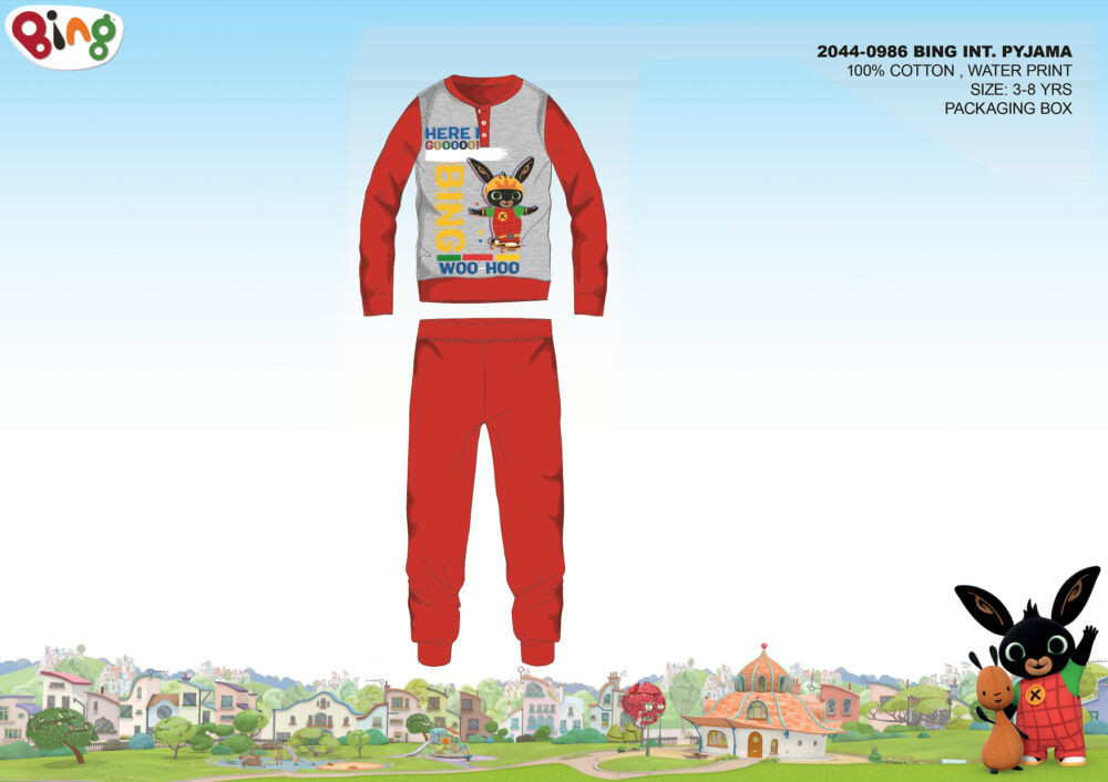 Téli pamut interlock gyerek pizsama - Bing nyuszi - piros - 98