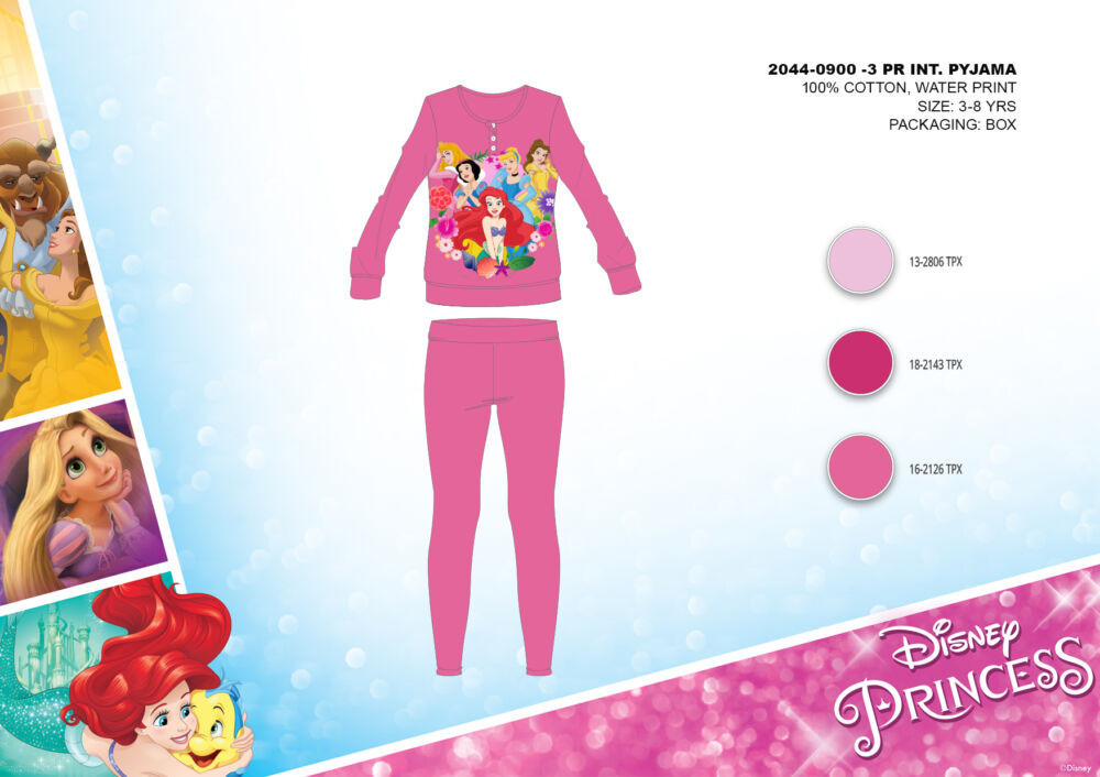 Téli pamut interlock gyerek pizsama - Disney Hercegnők - rózsaszín - 116