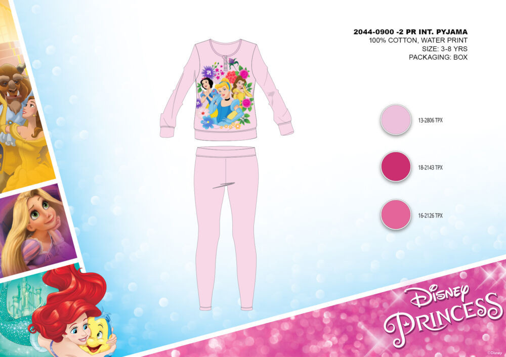 Téli pamut interlock gyerek pizsama - Disney Hercegnők - világosrózsaszín - 98