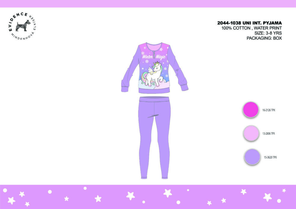 Téli pamut interlock gyerek pizsama - Unikornis - világoslila - 134
