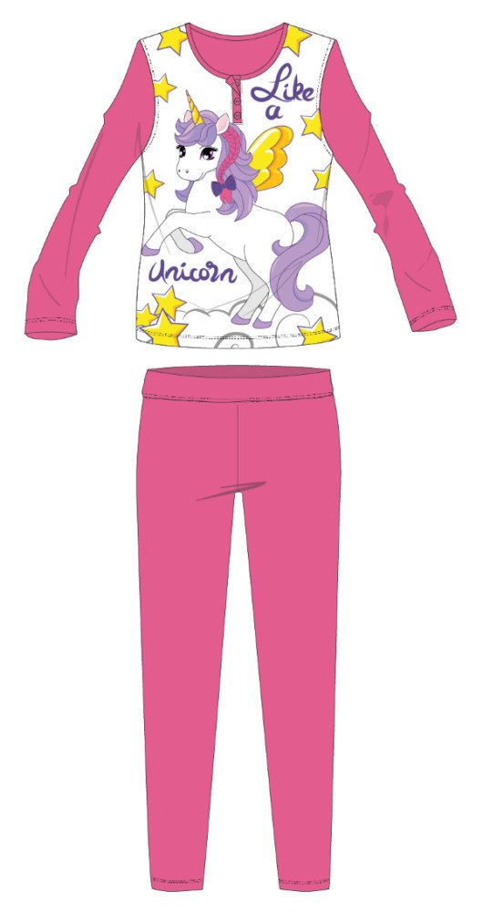 Unikornis hosszú vékony gyerek pizsama - pamut jersey pizsama - rózsaszín
