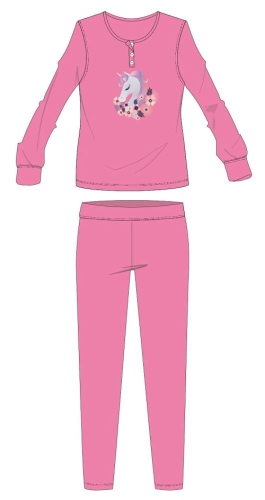 Unikornis pamut flanel pizsama - téli vastag gyerek pizsama - rózsaszín - 128