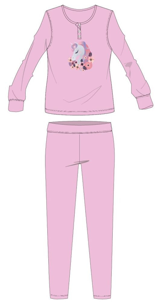 Unikornis pamut flanel pizsama - téli vastag gyerek pizsama - világosrózsaszín - 116