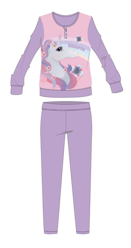Unikornis téli pamut gyerek pizsama - interlock pizsama - Unicorno felirattal - világoslila - 98