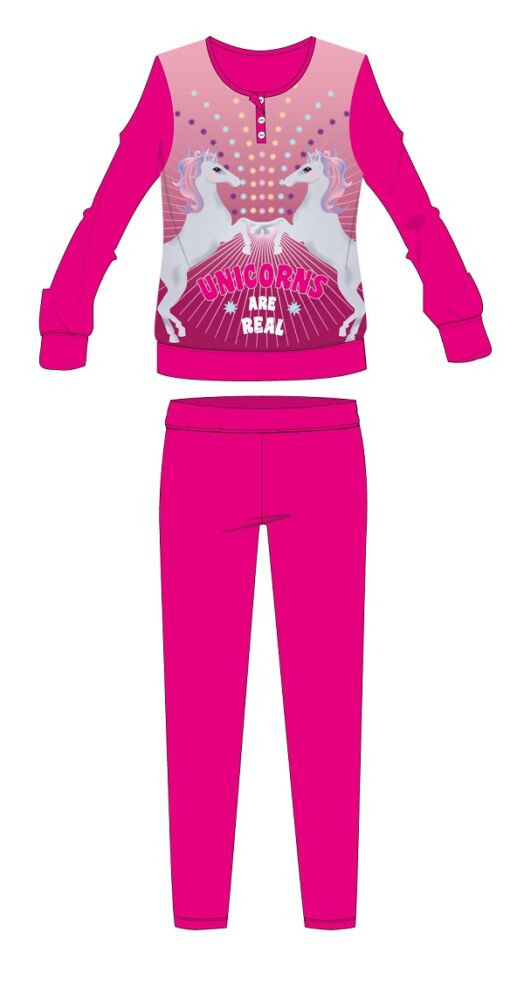 Unikornis téli pamut gyerek pizsama - interlock pizsama - Unicorns are real felirattal - pink -