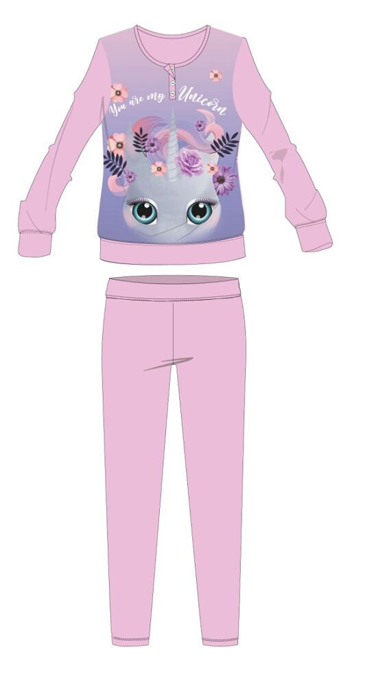 Unikornis téli pamut gyerek pizsama - interlock pizsama - You are my Unicorn felirattal - világosrózsaszín - 110