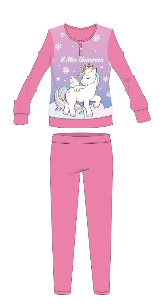 Unikornis téli vastag gyerek pizsama - pamut flanel pizsama - rózsaszín - 98