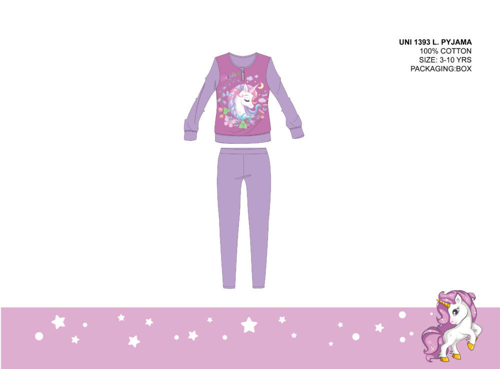 Unikornis vékony pamut gyerek pizsama - jersey pizsama - lila - 128