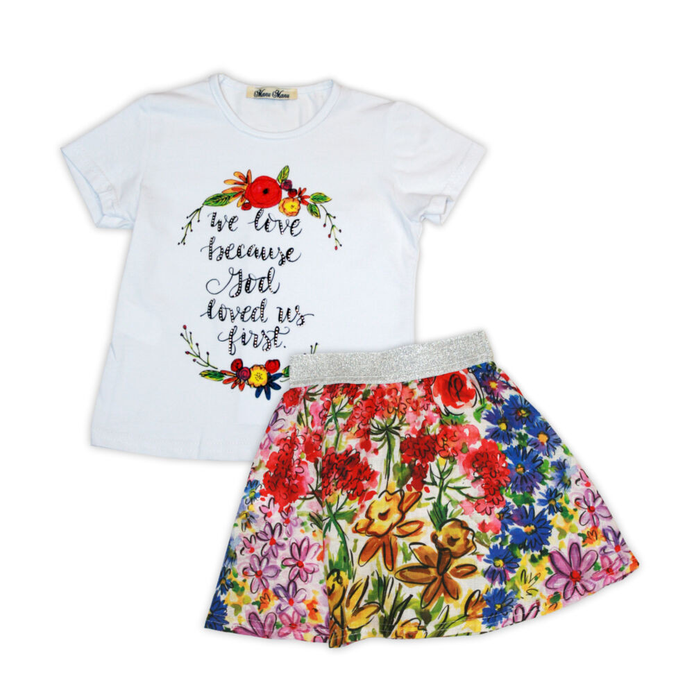 Virágmintás nyári szett kislányoknak - pamut szett - fehér-virágos - 128